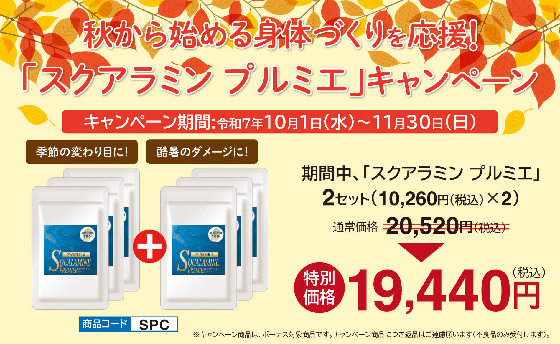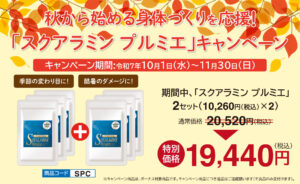 11月30日(日)までの期間中、「スクアラミン プルミエ」2個セットを特別価格で販売いたします。