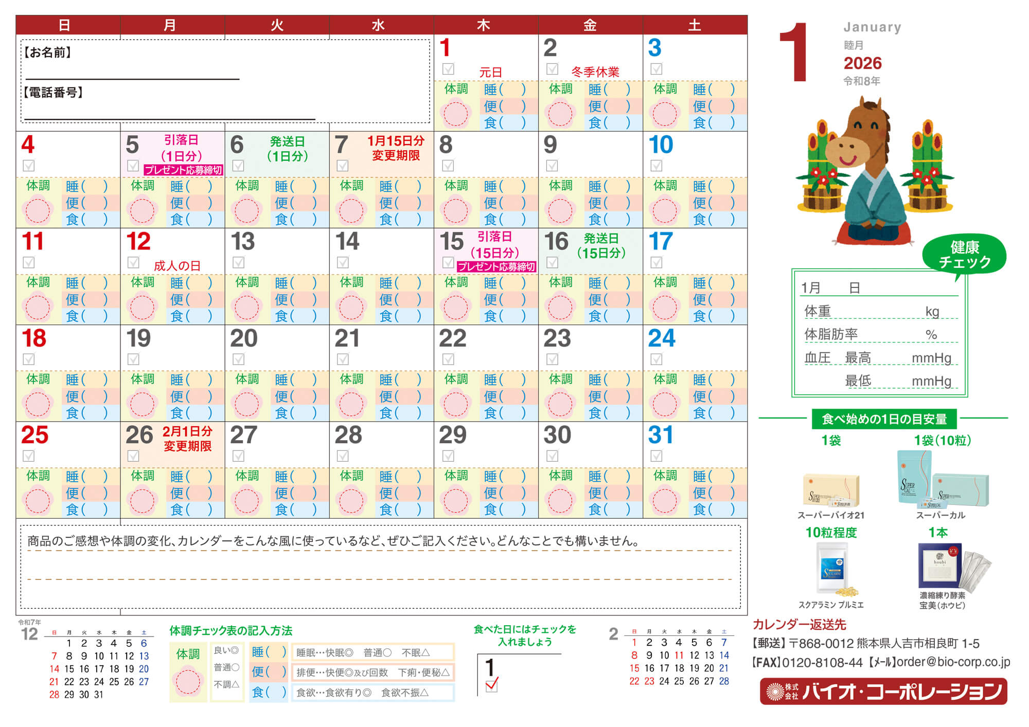 休業中は会員様専用ページ・FAX・留守番電話でのご注文を賜りますが、商品の発送は1月5日(月)より休業中のご注文受付順とさせていただきます。